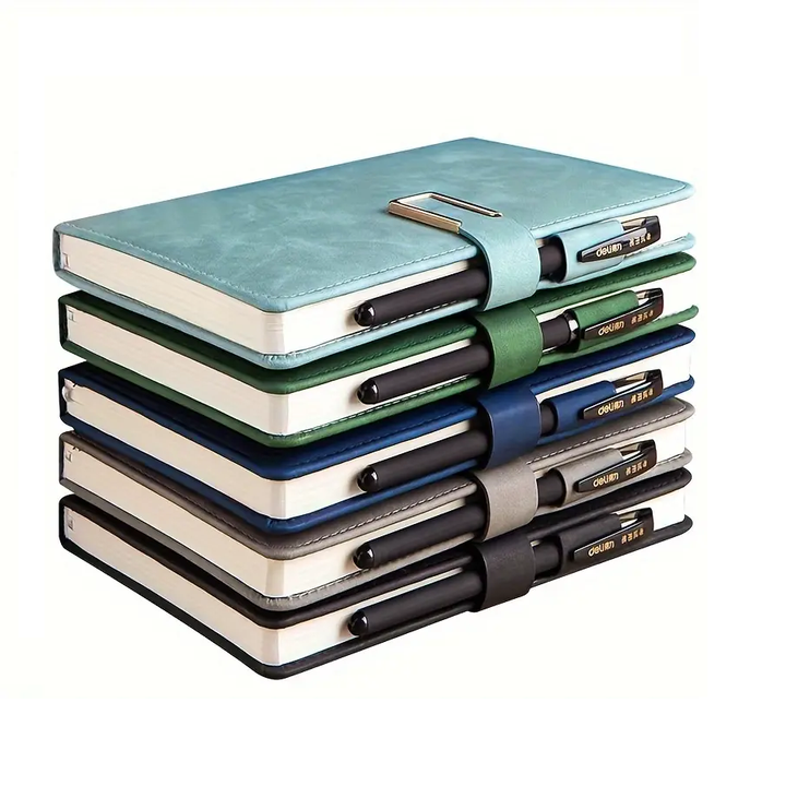 สมุดบันทึกธุรกิจ A5 ปกหนังเทียมคุณภาพพรีเมียม สไตล์เรียบง่าย ภาษาอังกฤษ