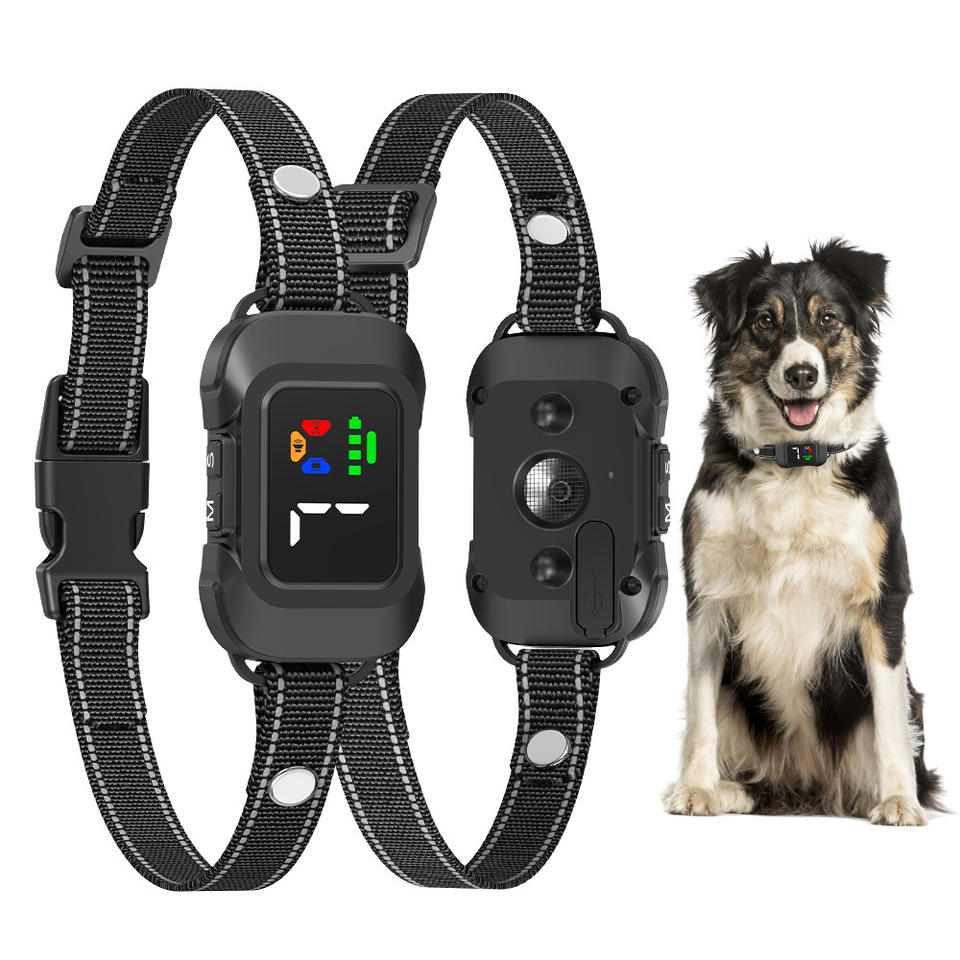 ปลอกคอควบคุมการเห่าของสุนัขอัจฉริยะที่มีหน้าจอสีและเทคโนโลยีอัลตราโซนิคสำหรับฝึก