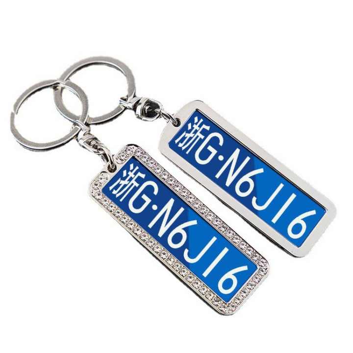 พวงกุญแจป้ายทะเบียนรถยนต์แบบสลักได้ สำหรับผู้ชาย ดีไซน์ทันสมัยและสร้างสรรค์ รูปทรงสี่เหลี่ยมผืนผ้า ป้องกันการสูญหาย