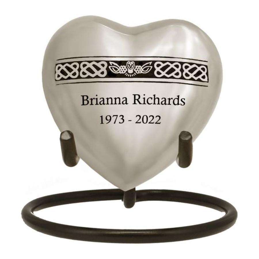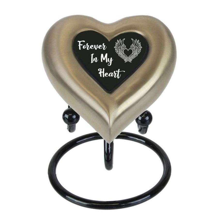 สายแกะสลักรูปหัวใจสีดำโกศใส่เถ้ากระดูกพร้อมขาตั้งช่วยปกป้องคนที่รักโกศโลหะขี้เถ้าของมนุษย์