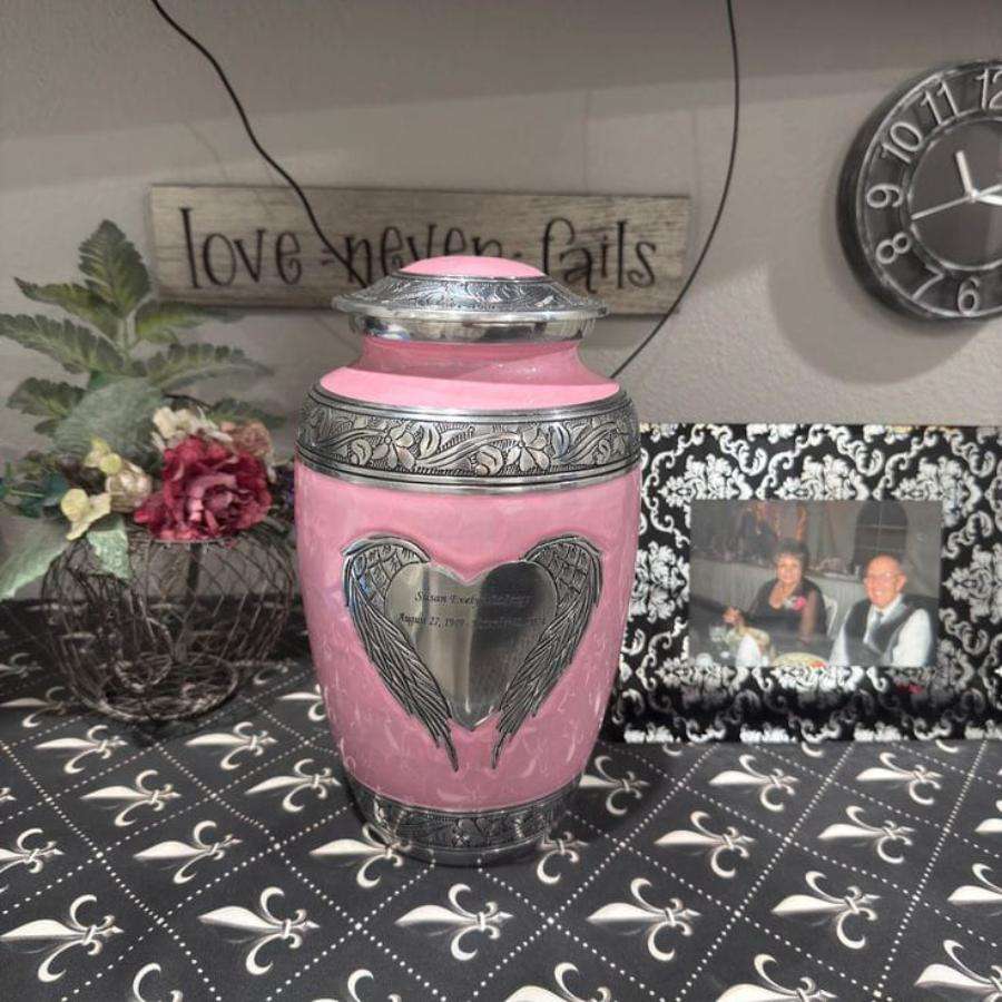 โกศโลหะสำหรับงานศพงานแกะสลักรูปเถ้ากระดูกสีเทอร์ควอยซ์