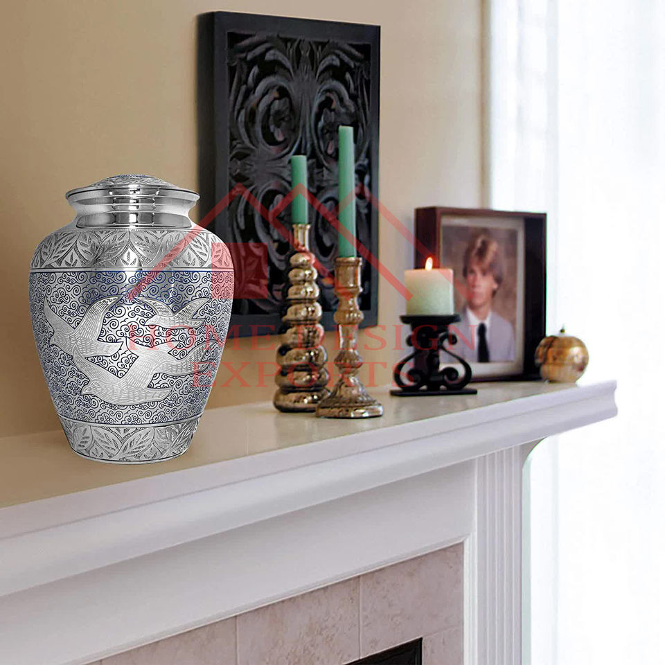 โกศทองเหลืองสำหรับงานศพทำจากนิกเกิลสำหรับขี้เถ้าของมนุษย์ขี้เถ้าโลหะโกศสำหรับงานศพ