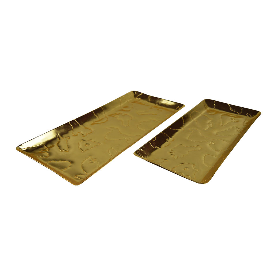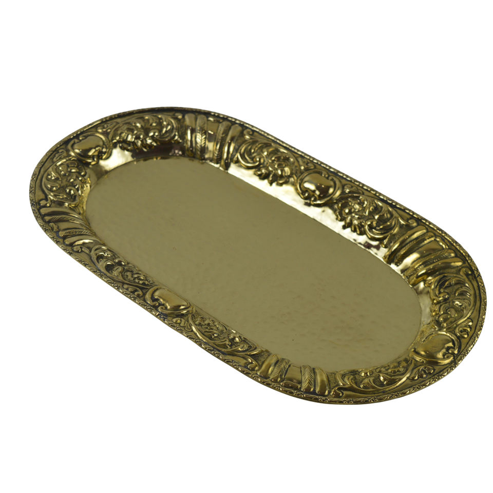 ถาดเสิร์ฟอาหารทองเหลืองเคลือบเงาดีไซน์โค้งมนสำหรับอาหารและเครื่องดื่มถาดเสิร์ฟและของตกแต่งโต๊ะ
