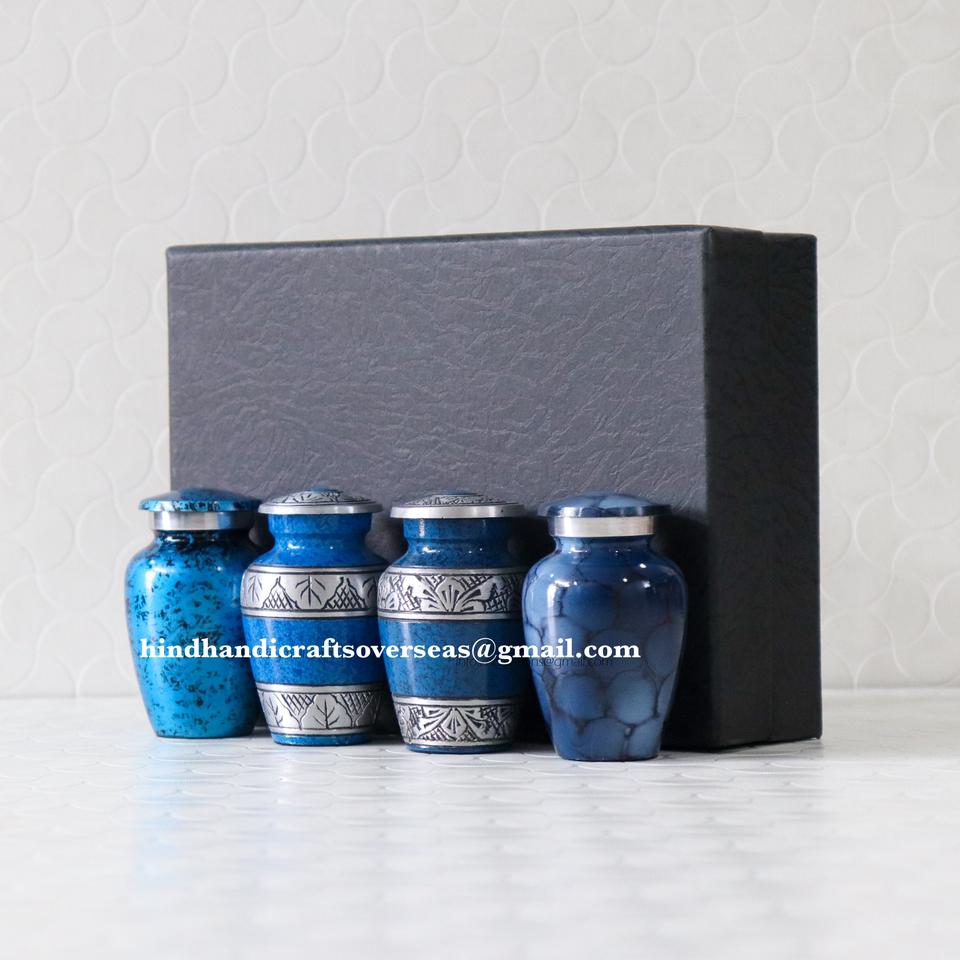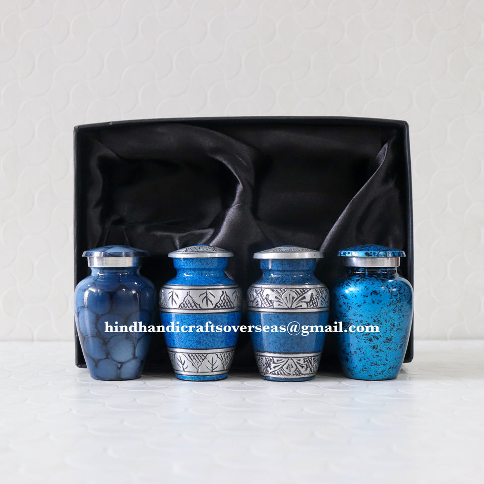 โกศสำหรับงานศพและเถ้ามนุษย์ทำด้วยมือสีฟ้าแกะสลักด้วยมือแกะสลักแบบมินิสำหรับเถ้ามนุษย์และอุปกรณ์งานศพโดย hho จากอินเดีย