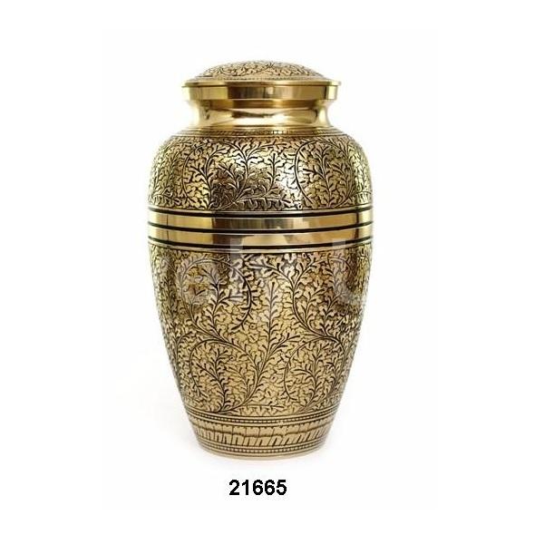 โกศสำหรับผู้ใหญ่ทำจากทองเหลืองสลักรูปใบไม้ทำจากโลหะเคลือบเงาพร้อมถุงกำมะหยี่