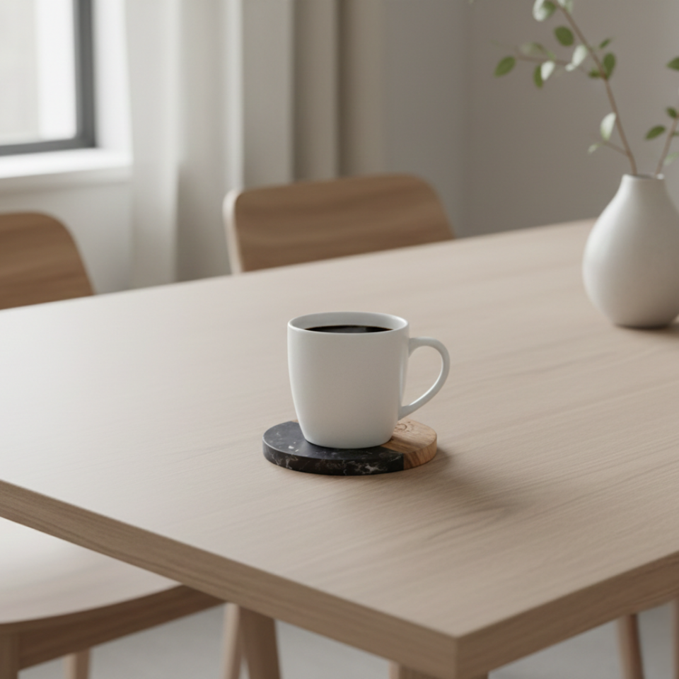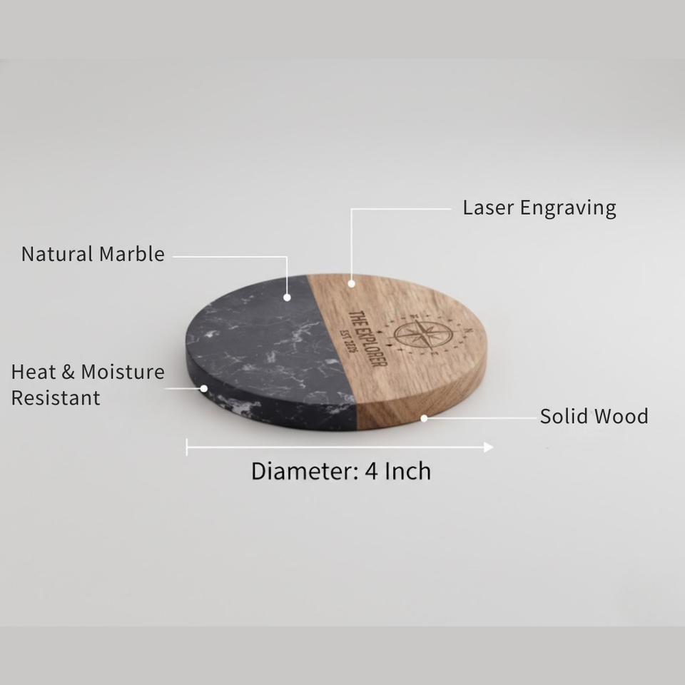 แผ่นรองแก้วหินอ่อนสลักลายธรรมชาติ รูปทรงสี่เหลี่ยมจัตุรัส ขนาด 4 นิ้ว (10 ซม. เส้นผ่านศูนย์กลาง) หนา 1 ซม. เป็นมิตรกับสิ่งแวดล้อม สไตล์โมเดิร์น