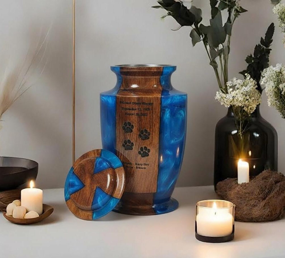 โกศเผาศพทำจากเรซินโรสวู้ดแกะสลักด้วยมือที่ระลึกที่ระลึกงานศพสัตว์เลี้ยงและมนุษย์โกศ