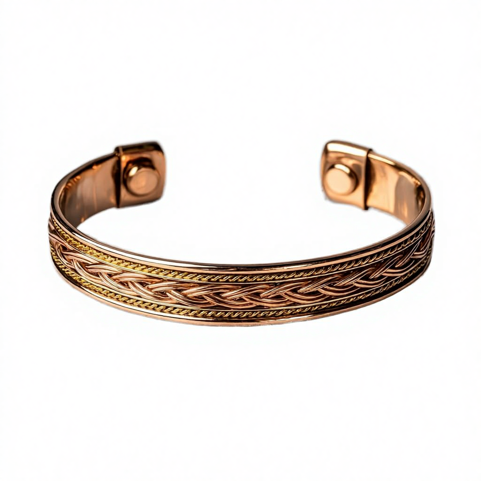 สร้อยข้อมือถักแท้สไตล์พังก์แบบยูนิเซ็กซ์สำหรับงานปาร์ตี้ พร้อมตัวล็อคแม่เหล็กทองแดงสแตนเลสสลักลาย
