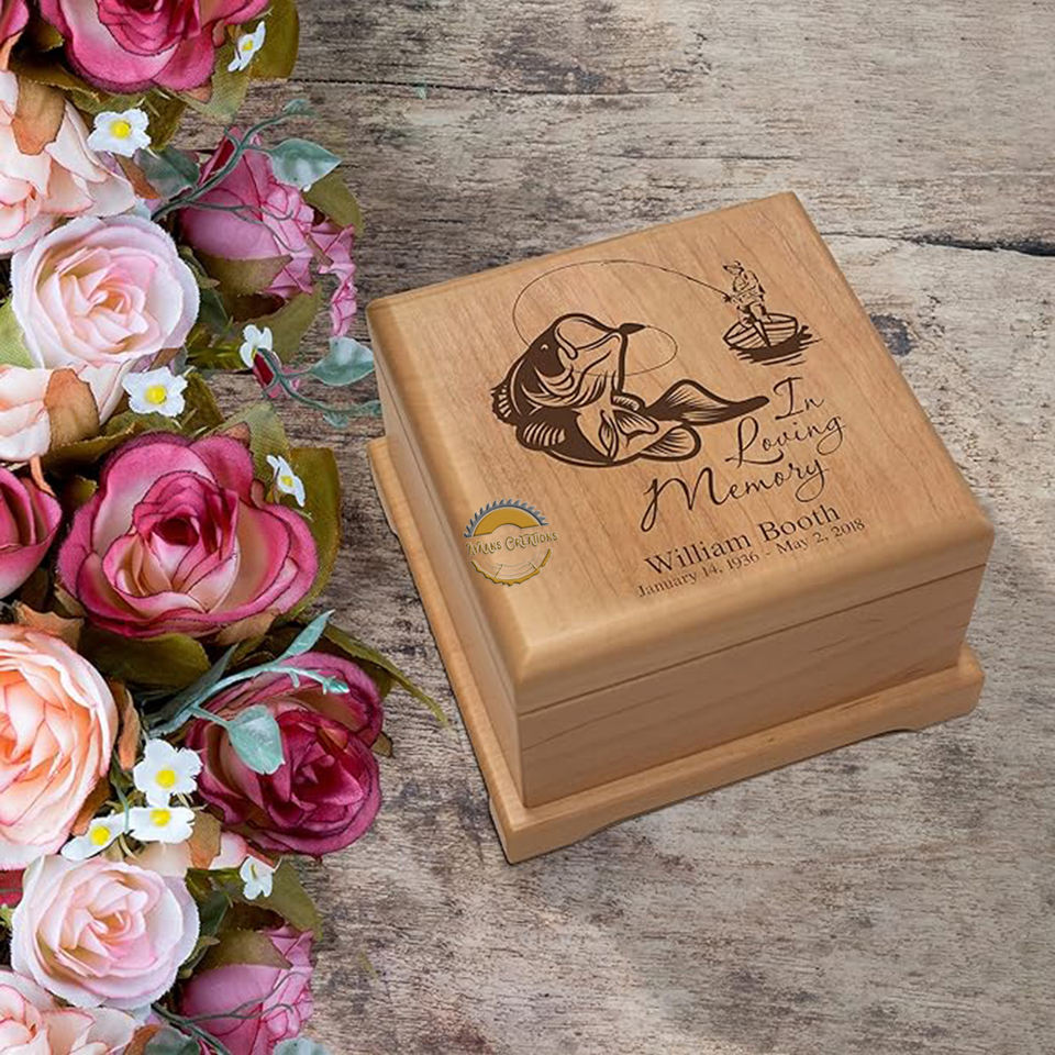 โกศไม้แกะสลักพร้อมดีไซน์รูปปลา