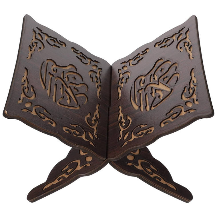 แท่นวางคัมภีร์กุรอานไม้แกะสลัก แท่นวางไม้สื่อความหมายถึงการยกระดับความรู้ในชีวิตประจำวัน