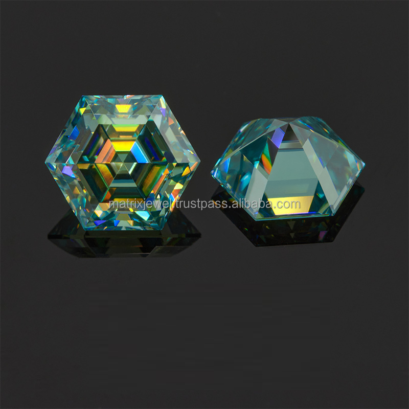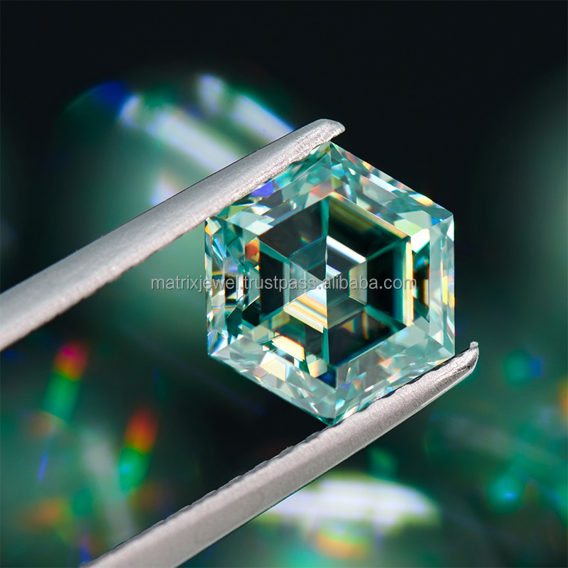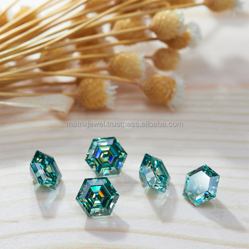 Vs1 1.08ct เพชรสีเขียวตัดหกเหลี่ยม VV1เพชรที่ปลูกได้รับการรับรองจากห้องแล็บทรงหกเหลี่ยมสำหรับเครื่องประดับ CVD แบบหลวม