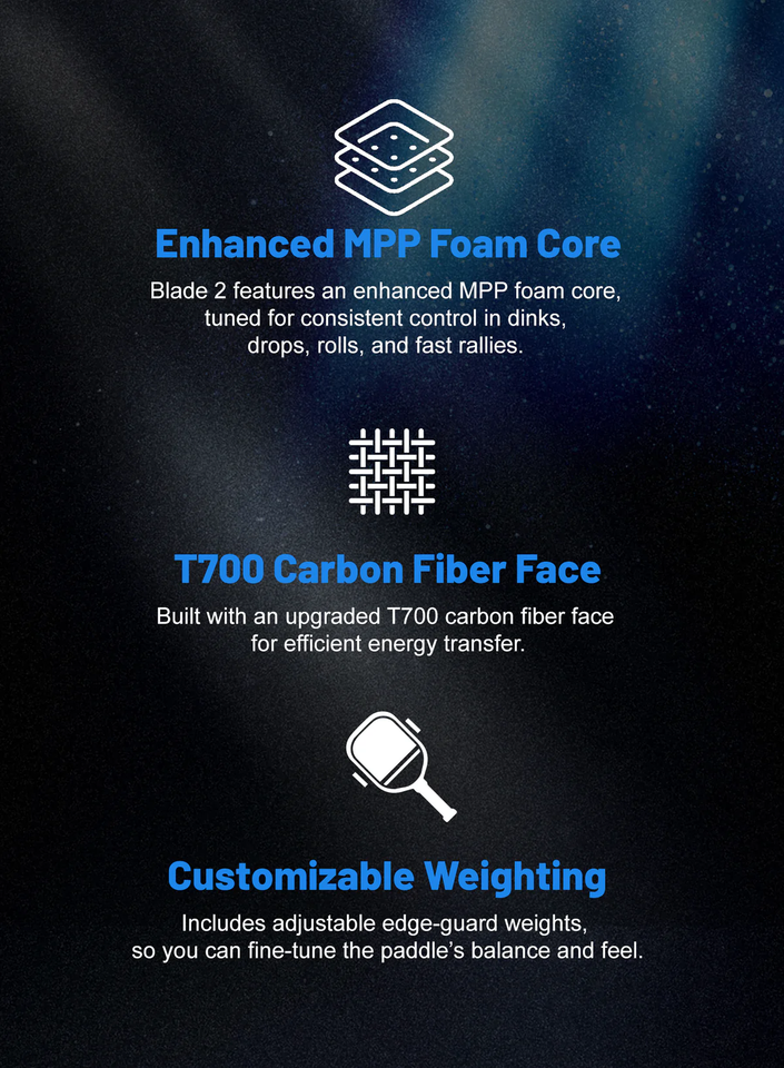 ไม้พายพิกเคิลบอลแบบพกพาไร้ขอบ ทำจากคาร์บอนไฟเบอร์ T700 แกนรังผึ้งเสริมประสิทธิภาพ ปรับน้ำหนักได้ ควบคุมการหมุนได้อย่างแม่นยำ