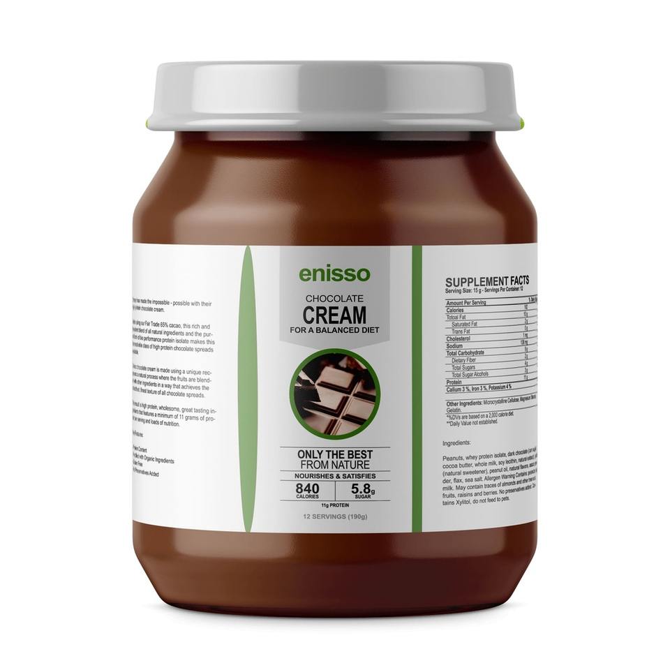 ครีมช็อกโกแลตโปรตีน Enisso อาหารเช้าคาร์โบไฮเดรตต่ำปราศจากน้ำตาลบรรจุภัณฑ์โลโก้ออกแบบได้ตามต้องการ