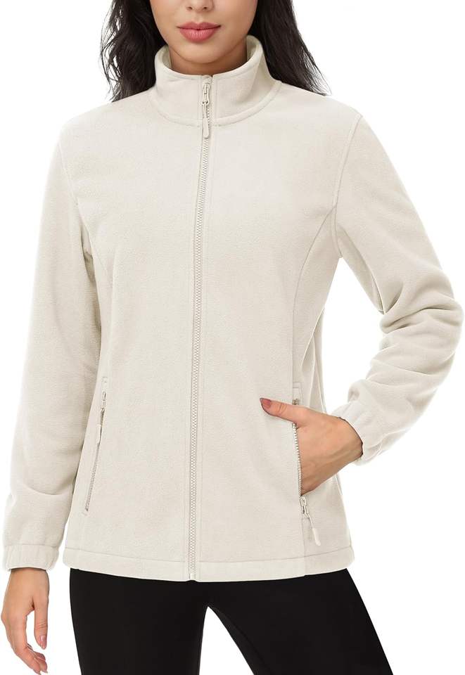 แจ็กเก็ตผ้าฟลีซแบบมีซิปน้ำหนักเบาของผู้หญิงแขนยาวใส่สบายพอดีตัวสำหรับใส่ได้ทั้งชายและหญิงสำหรับความผาสุกในฤดูหนาว