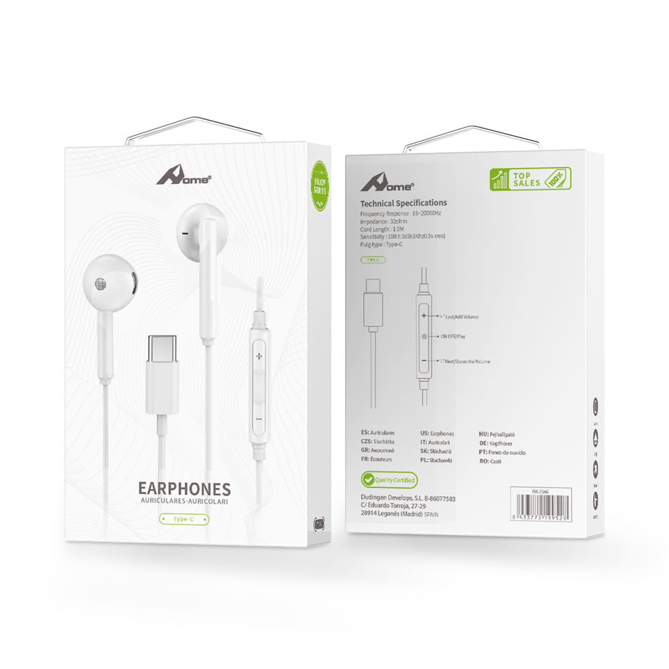 Enjoy Type-C Connector Earphones with 1m Cable & Volume Control Non-Noise Cancelling Wired Music Earphones
