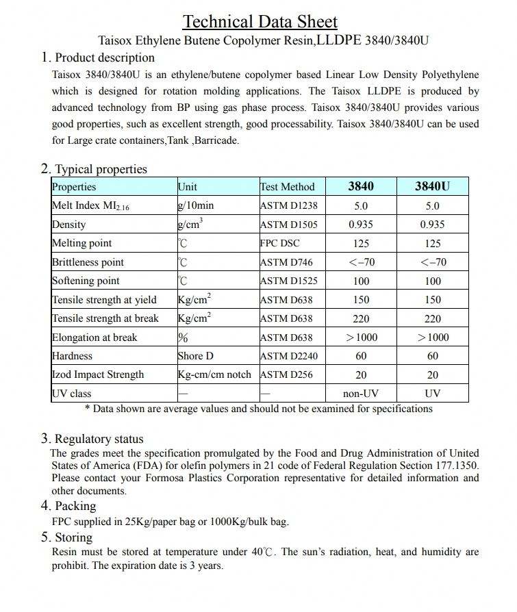 ชื่อผลิตภัณฑ์:เม็ดยาแบบเม็ดสำหรับถังน้ำบริสุทธิ์จาก Lldpe