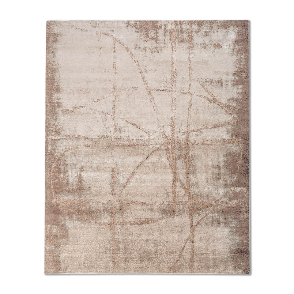 พรมขนสัตว์และไหมไผ่ถักมือสีเบจและสีน้ำตาล ขนาด 9x12 ฟุต รูปทรงสี่เหลี่ยมผืนผ้า สำหรับห้องนั่งเล่นหรือทางเดินในบ้าน-AKWB-3565