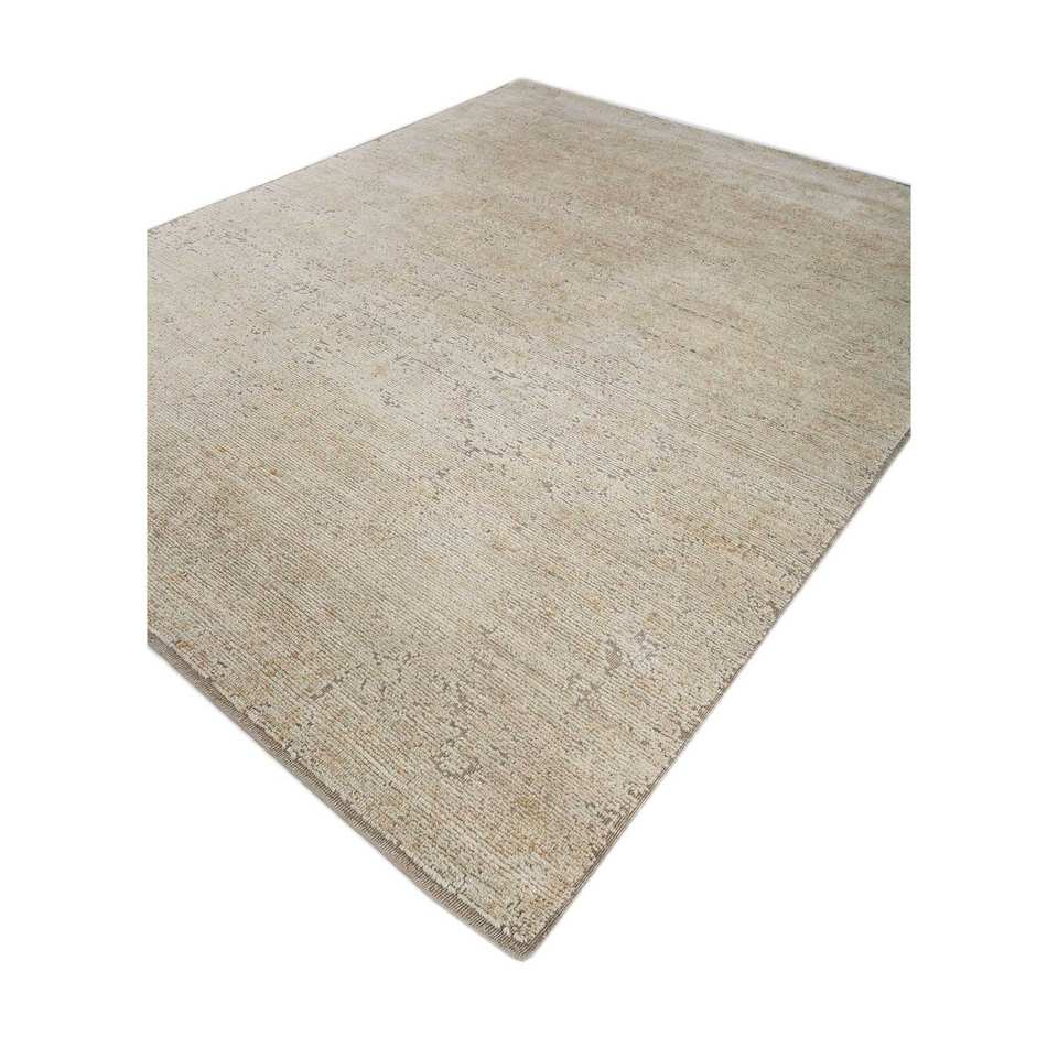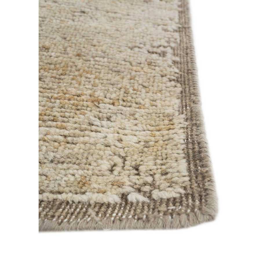 พรมขนสัตว์ถักมือสีเบจและสีน้ำตาลลายเรขาคณิตสีพื้นสำหรับห้องนั่งเล่นหรือทางเดินในบ้าน-Reb-1488