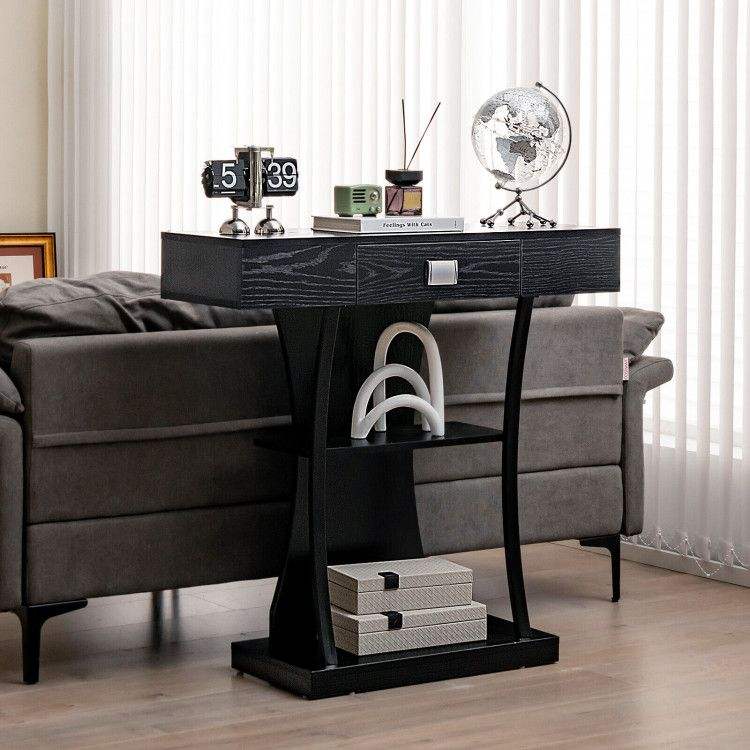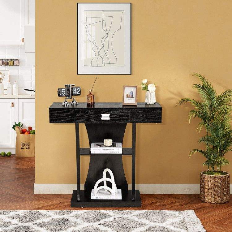โต๊ะคอนโซลในห้องนั่งเล่นพร้อมลิ้นชักและชั้นวางของ2ชั้น