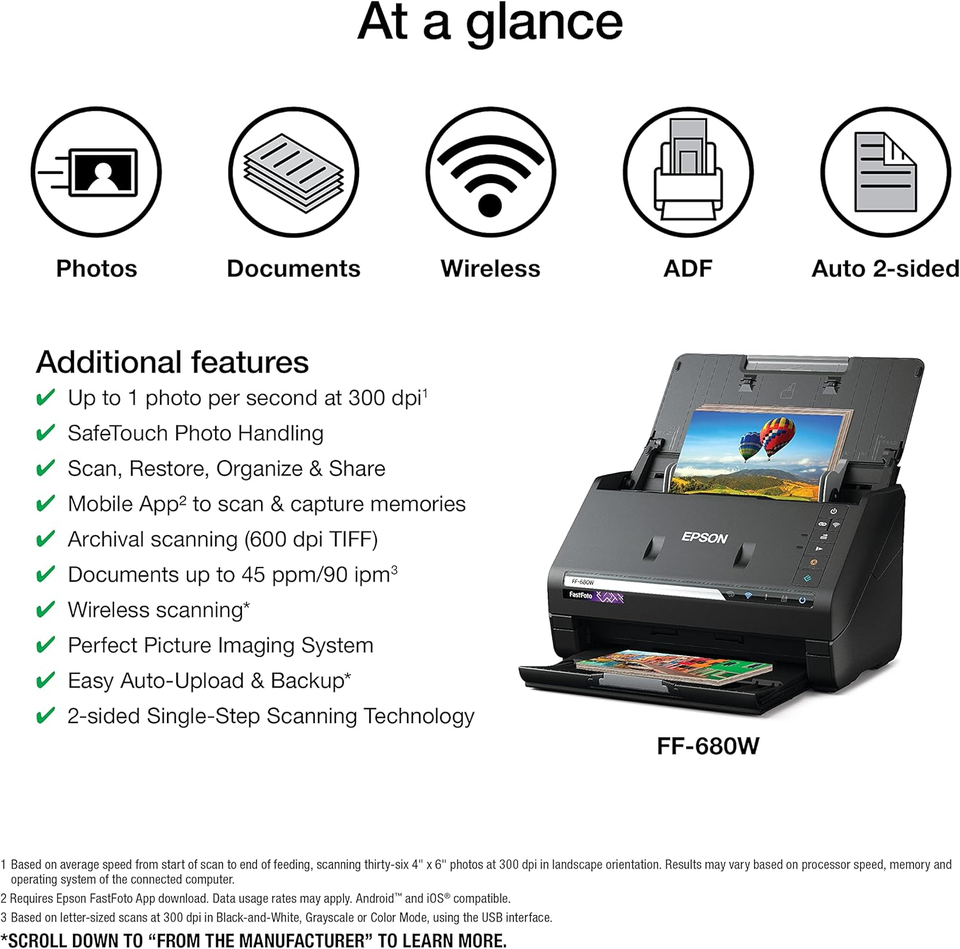 EP SON fastfoto FF-680W ระบบถ่ายภาพและเอกสารความเร็วสูงแบบไร้สายสีดำ