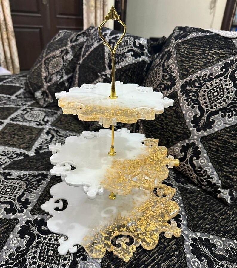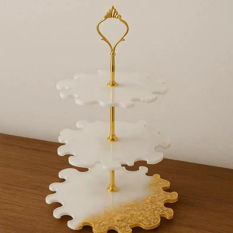 แม่พิมพ์เรซิ่นซิลิโคนสำหรับทำขนมเค้กเรซิ่นอีพ็อกซี่แบบ 3 ชั้น พร้อมถาดเสิร์ฟจากอินเดีย