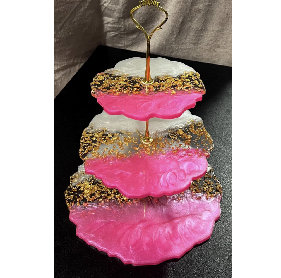 แท่นวางเค้กเรซินอีพ็อกซี่เรซิ่นพร้อมชั้นวางเค้กสามชั้นสำหรับเค้กขนมงานหัตถกรรมอีพ็อกซี่
