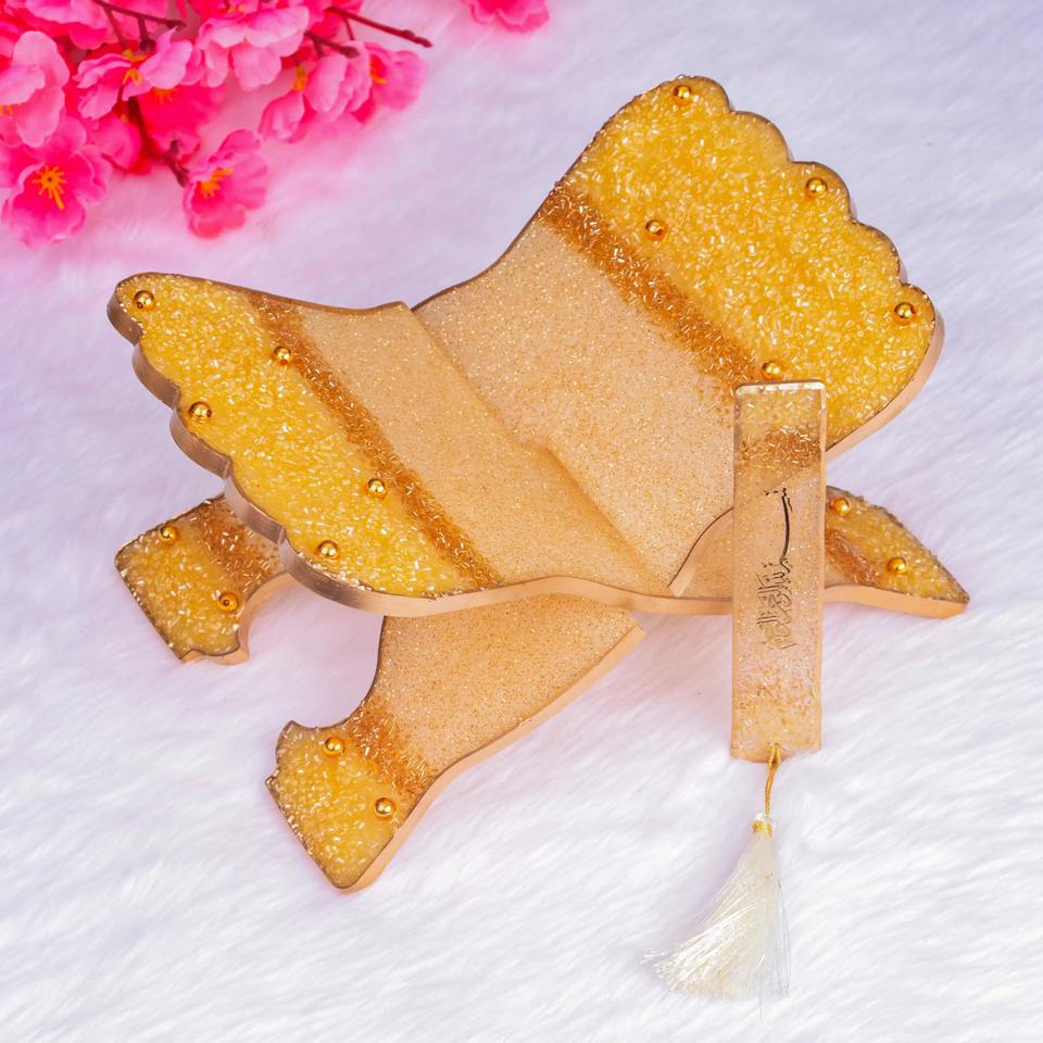 แท่นวางอัลกุรอานเรซิ่นอีพ็อกซี่ ขนาด 12 นิ้ว พับได้ ที่วางหนังสือ อ่านหนังสือได้ ปรับแต่งชื่อ สี ได้ ของที่ระลึกทางศาสนา รอมฎอน ของขวัญ DIY