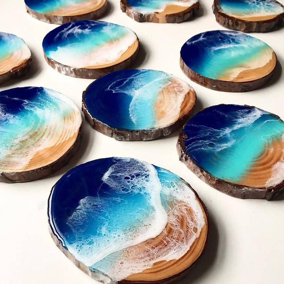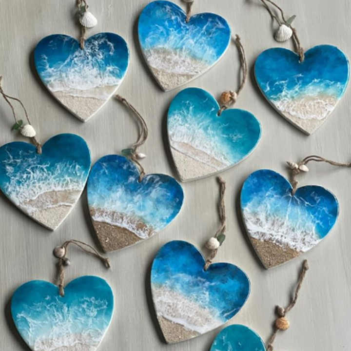 งานฝีมือเรซิ่นอีพ็อกซี่รูปทะเลพร้อมสัตว์ทะเลและเต่า ชิ้นงานเรซิ่นไม้ลายพิเศษ เหมาะสำหรับตกแต่งบ้านและเป็นของขวัญคริสต์มาส