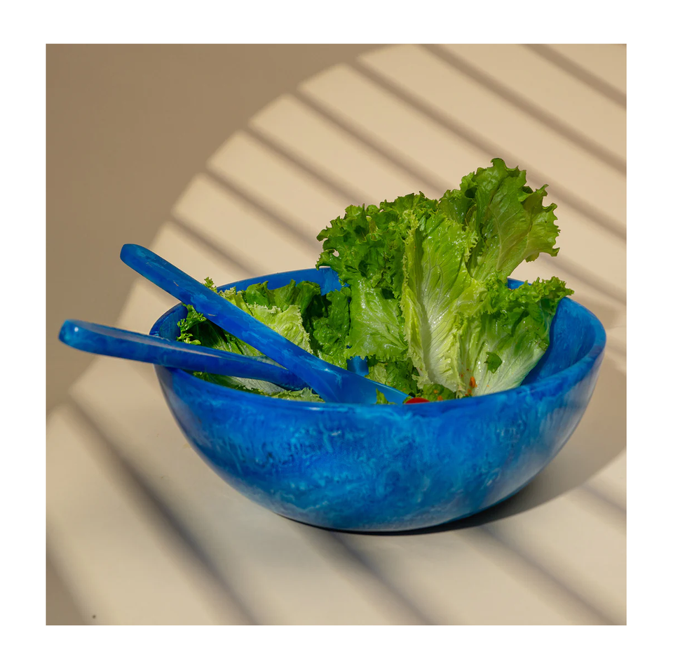 ชามสลัดเรซินอีพ็อกซี่พร้อมช้อน2อันสำหรับอาหารเย็นและก๋วยเตี๋ยว
