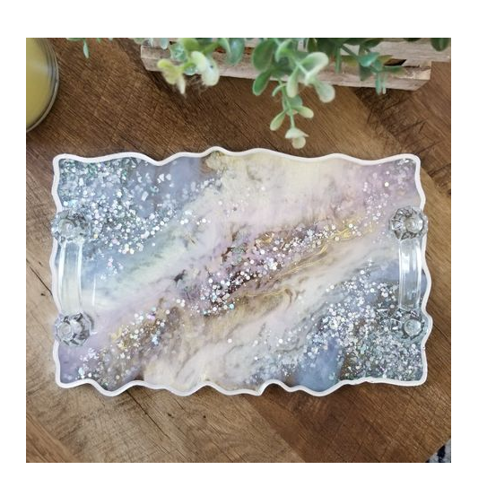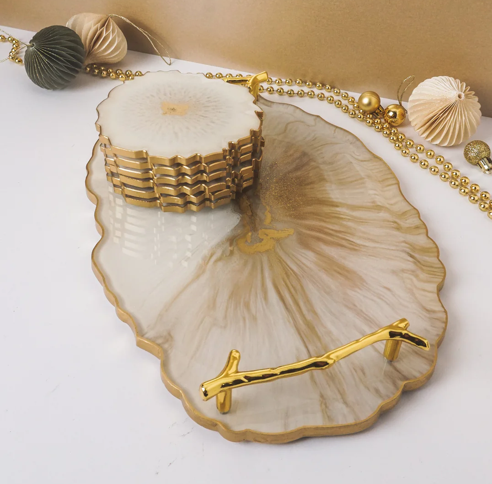 Epoxy Resin Serving Tray Best Grade Resin Tray Round Gold Polished Storage Resin Serving Tray