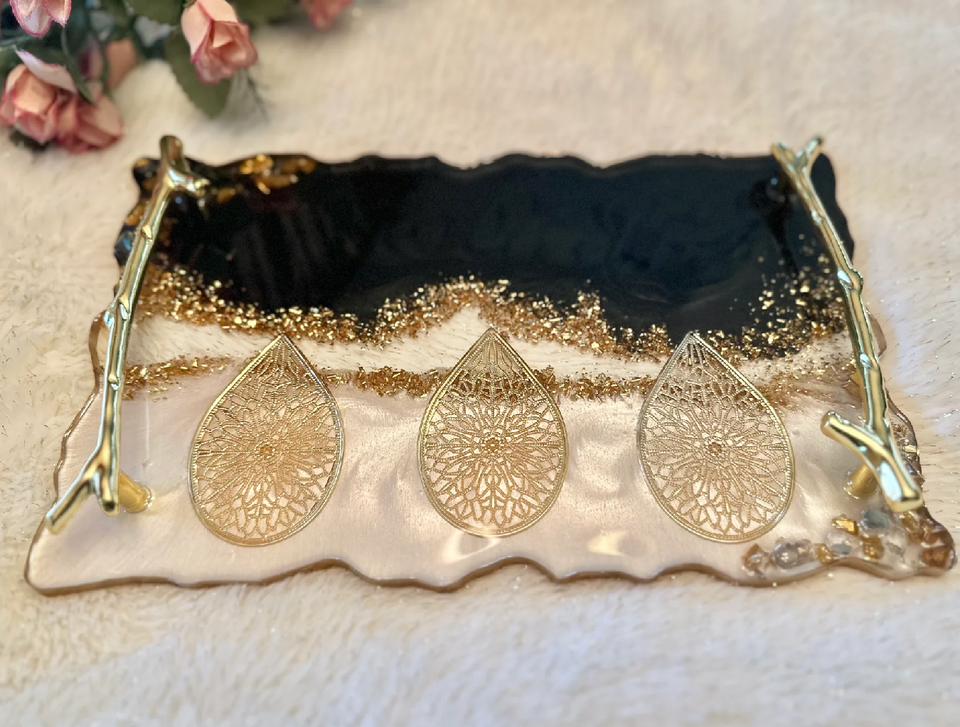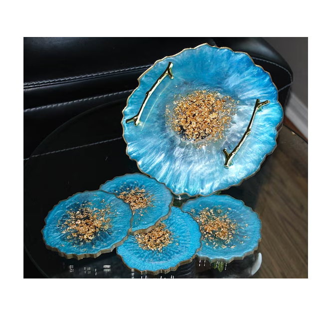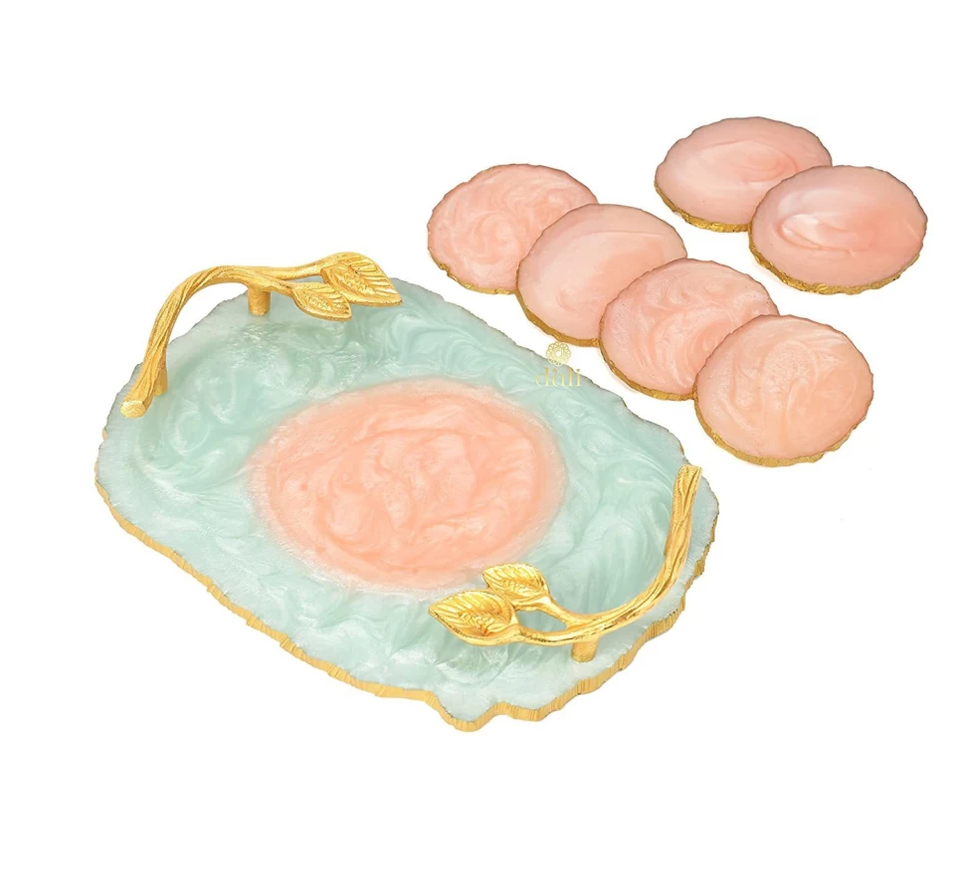 ถาดเสิร์ฟทำจากเรซินอีพ็อกซี่เรซิ่นสีฟ้าและชมพูสำหรับเด็กหรูหราใช้ในบ้าน