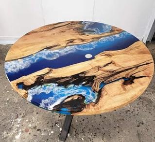 โต๊ะเรซิ่นอีพ็อกซี่ ท็อปไม้จริง โต๊ะรับประทานอาหารอีพ็อกซี่ ไม้จริงธรรมชาติ ปรับแต่งขนาด รูปทรง ประเภทไม้ และสีอีพ็อกซี่ได้