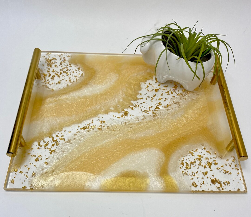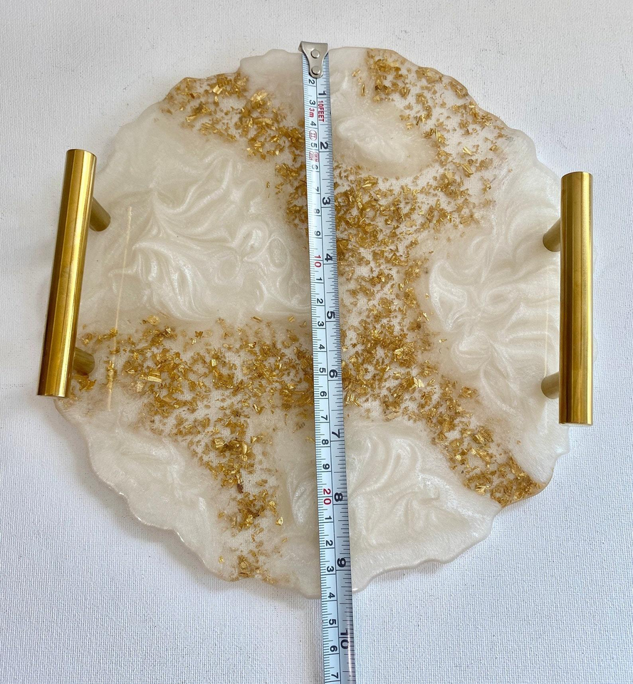 ถาดเรซิ่นอีพ็อกซี่พร้อมหูจับโลหะ ถาดใส่อาหาร ผลไม้ ถาดใช้ในบ้าน ครัว โต๊ะอาหาร ถาดเสิร์ฟชา กาแฟ ขายดี