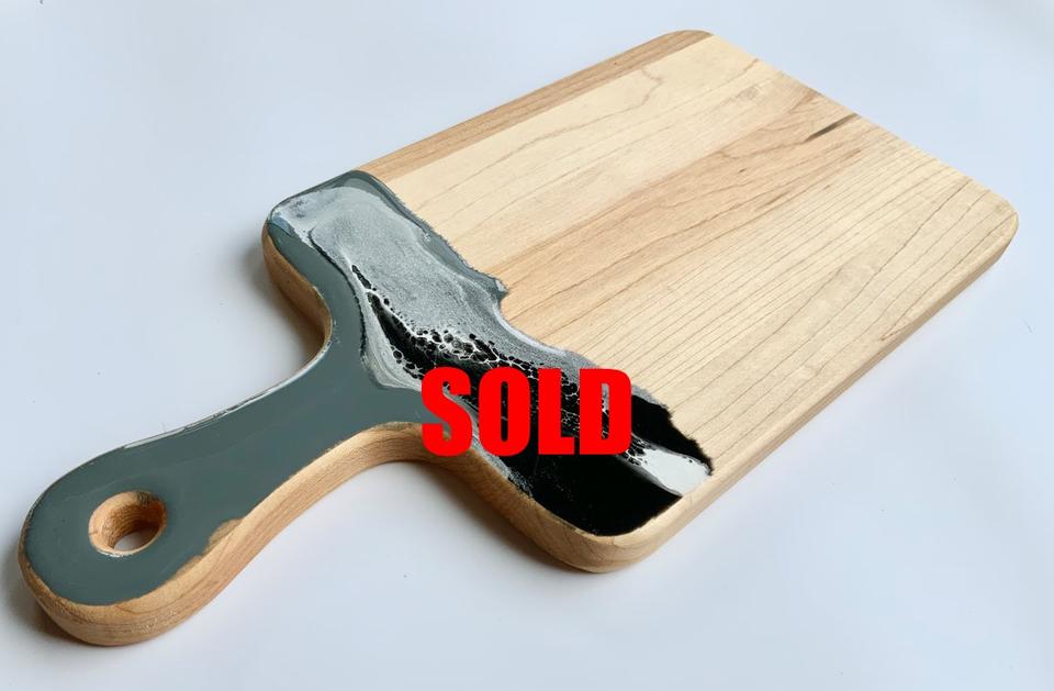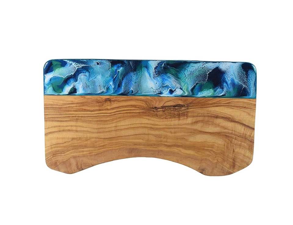 เขียงทรงสี่เหลี่ยมทำจากไม้อีพ็อกซี่เรซิ่นและชีส