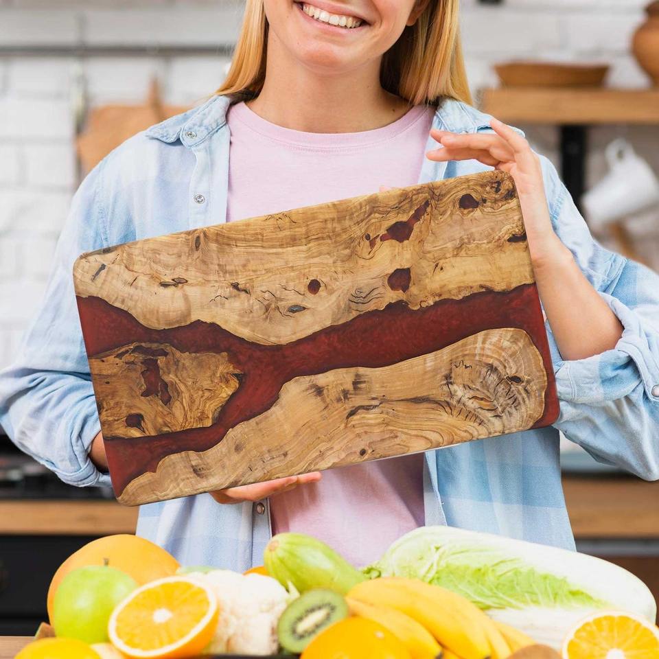 อีพอกซีเรซินและกระดานไม้เนื้อแข็งสำหรับตัดหรือเสิร์ฟชิ้นงานแฮนด์เมดไม่เหมือนใครเหมาะสำหรับงานแต่งงานหรือของขวัญพิเศษ