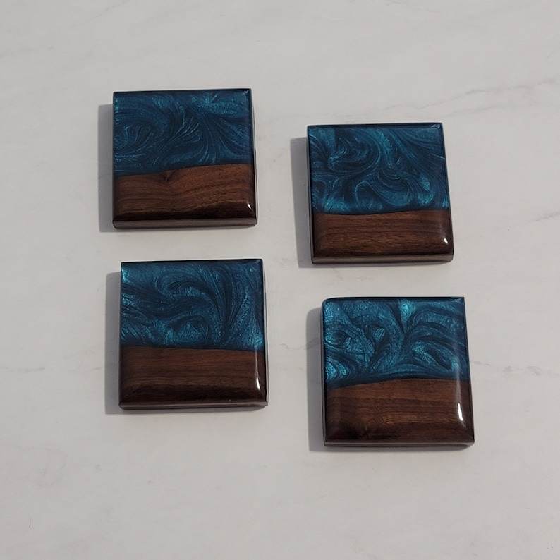 แผ่นรองแก้วเรซิ่นอีพ็อกซี่และไม้ สำหรับใช้ในบ้านและสำนักงาน แผ่นรองแก้วเรซิ่นอีพ็อกซี่ไม้กระถินณรงค์แบบกำหนดเองได้