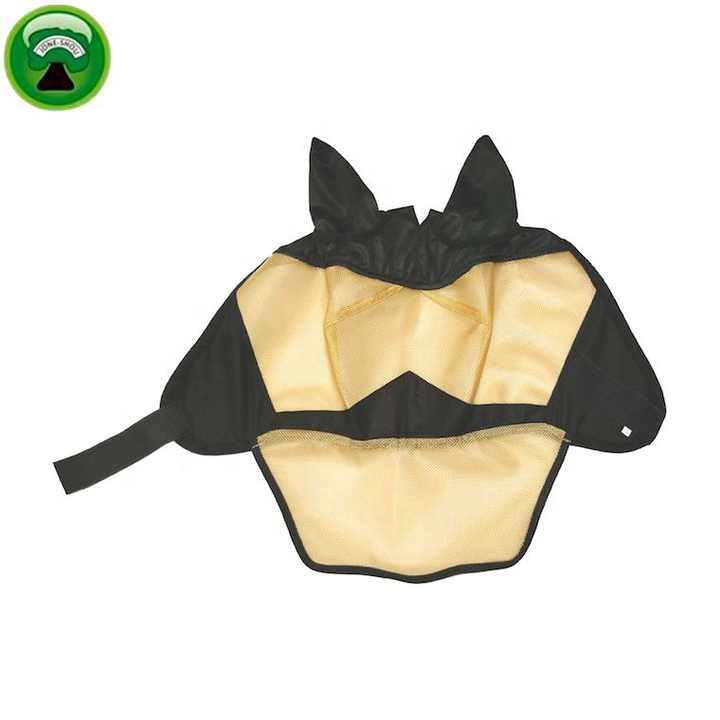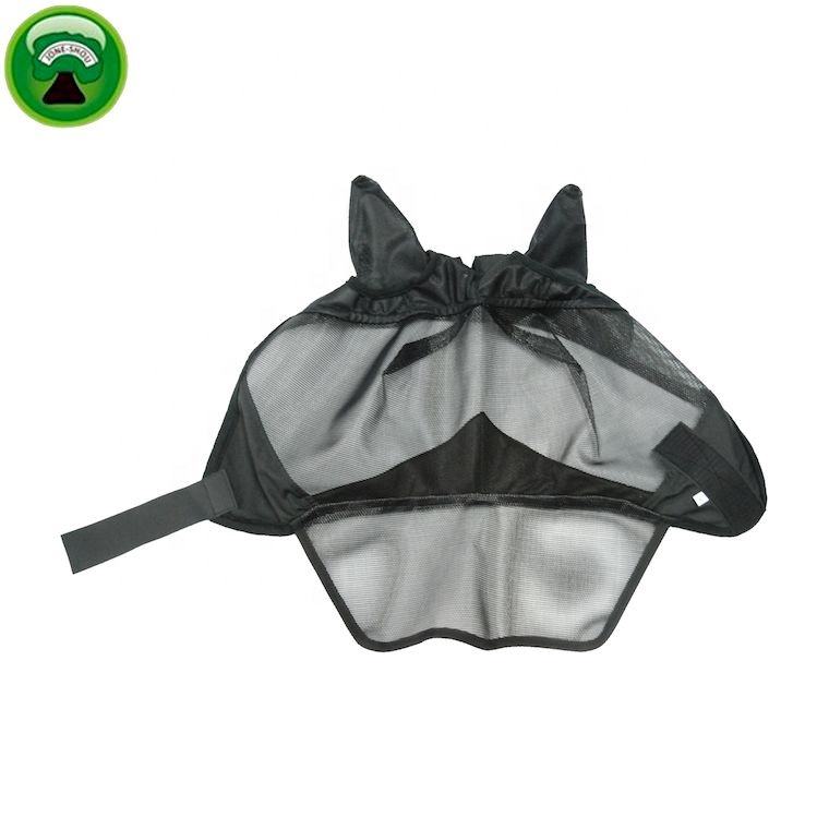 หน้ากากกันแมลงสำหรับม้าแบบตาข่าย PVC สีดำ พร้อมที่คลุมจมูก