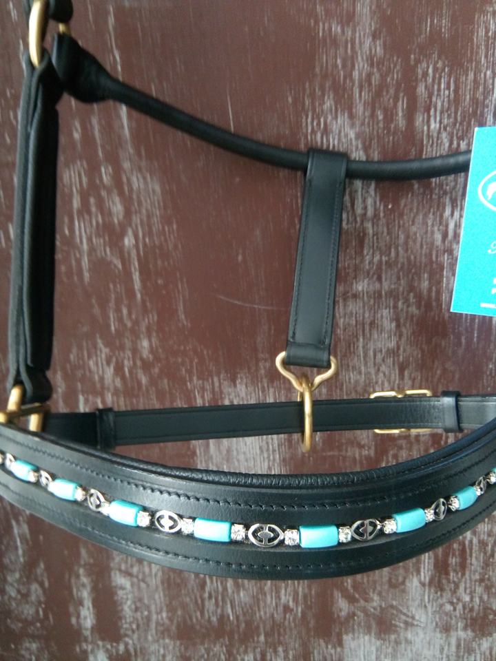 เชือกแขวนคอหนังม้าพร้อมแผ่นบุนุ่มพร้อมจมูกคริสตัลอุปกรณ์ขี่ม้าปกหัวม้าตามสั่ง