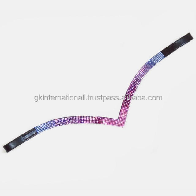 อุปกรณ์ตกแต่งอานม้าสำหรับแข่งม้า คริสตัล ไรน์สโตน ประดับตกแต่งแบบเมกะบลิง รูปทรงตัววี สายคาดหน้าผากม้าหนัง สำหรับม้าขนาดฟูลโคบ