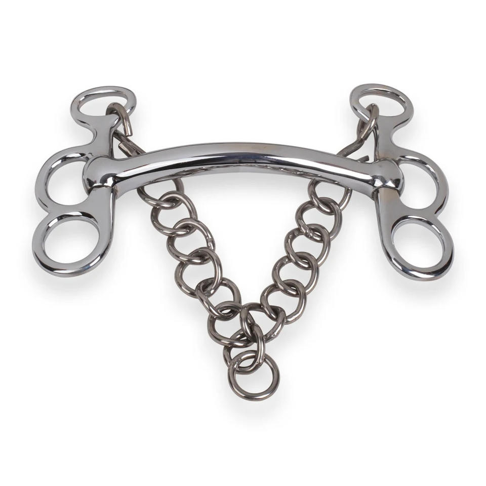 บิตม้าสแตนเลสแบบผีเสื้อ พร้อมปากบิตโค้ง โซ่ทนทาน อุปกรณ์ขี่ม้า