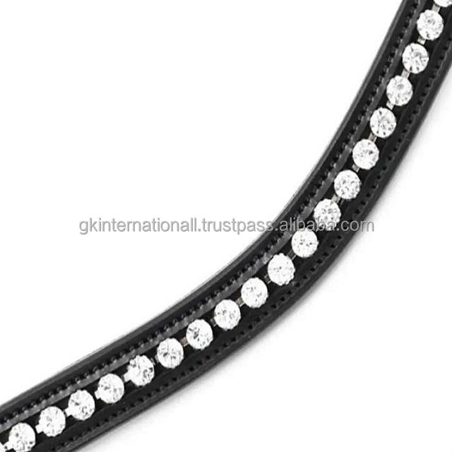 ผลิตภัณฑ์ขี่ม้ารูปร่างโค้งช่องเปล่าหนังวงม้าฝังด้วยคริสตัลใสที่กำหนดเองประกายเพชร