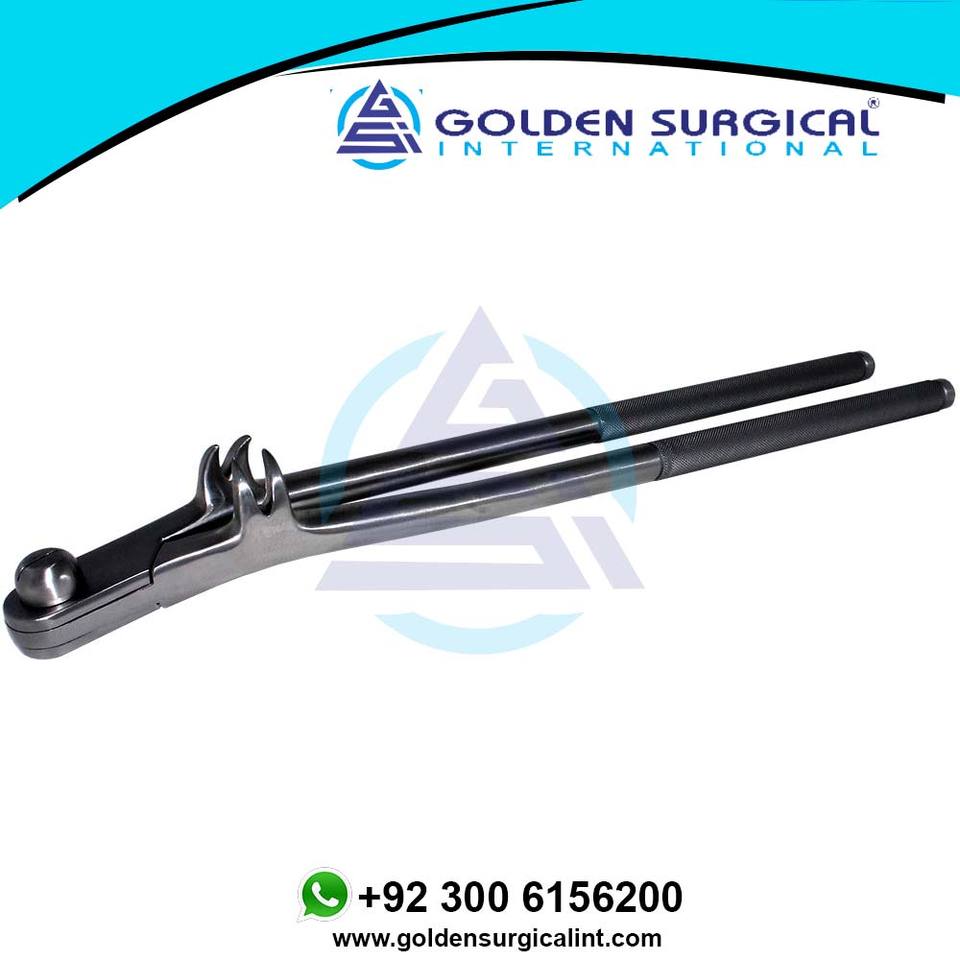 Equine 4-Prong Maxillary Molar Extractor with Built-In Fulcrum - Curved Stainless Steel Horse Dental Forceps