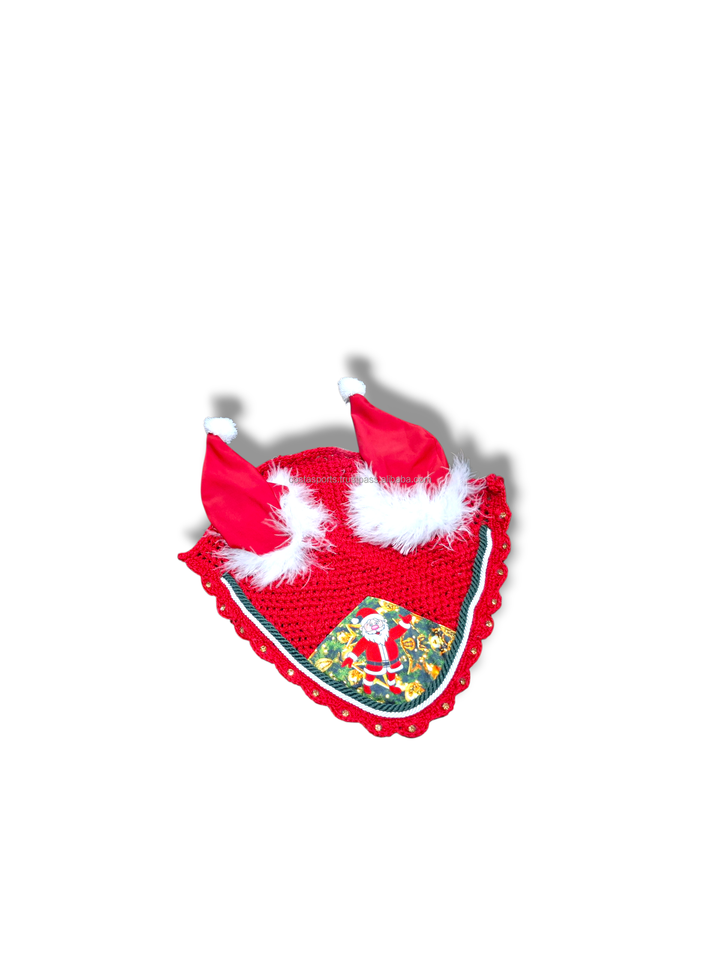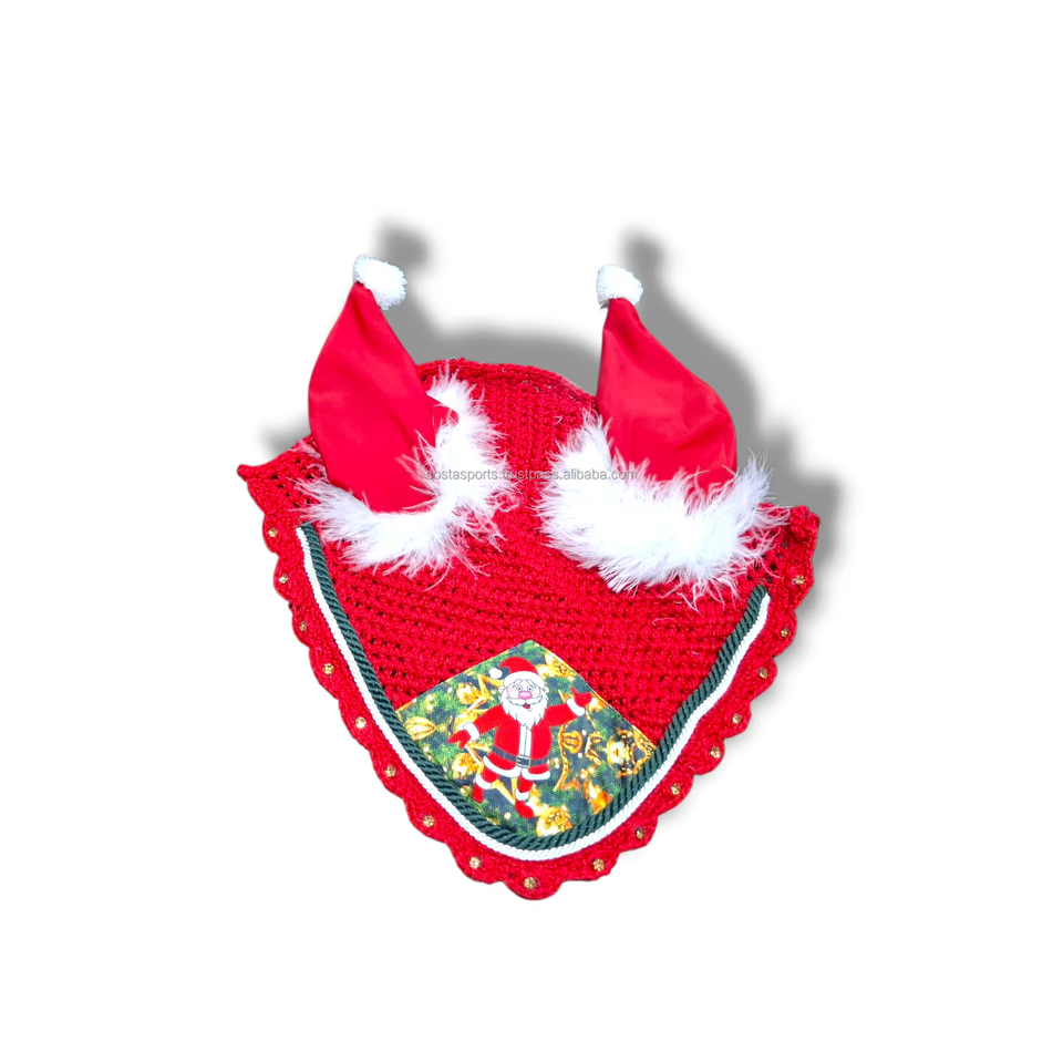 หมวกคลุมหูรูปม้าอุปกรณ์สำหรับเทศกาลคริสต์มาสที่สวยงามผลิตภัณฑ์ขี่ม้าตาข่ายคลุมหูพร้อมห่วง