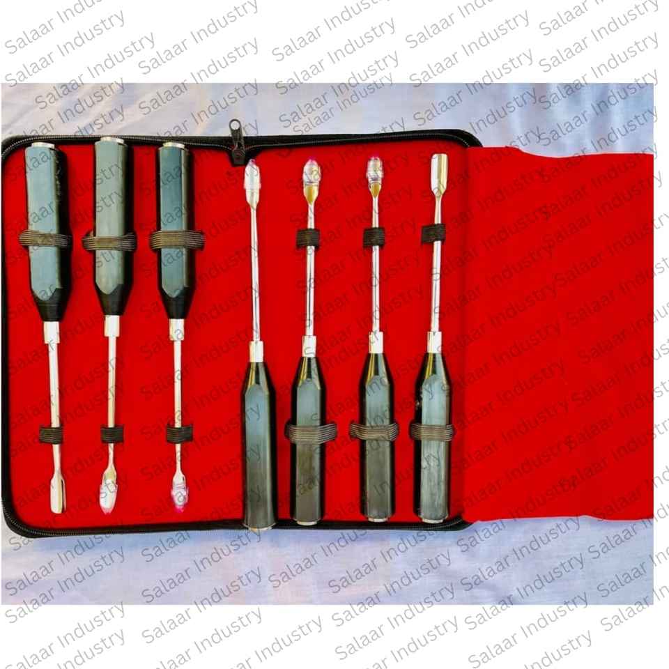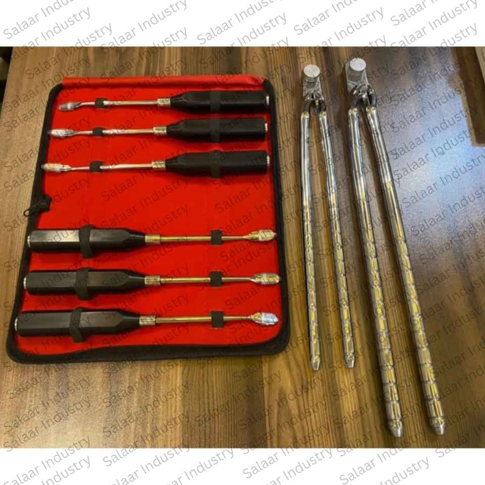 ชุดอุปกรณ์ถอนฟันม้าแบบ Wolf Elevator 6 ชิ้น ความยาว 12 นิ้ว, 3 ชิ้น ปลาย 8 มม., 4 ชิ้น ขนาด 12 มม. พร้อมกระเป๋าใส่คีม 2 ชิ้น