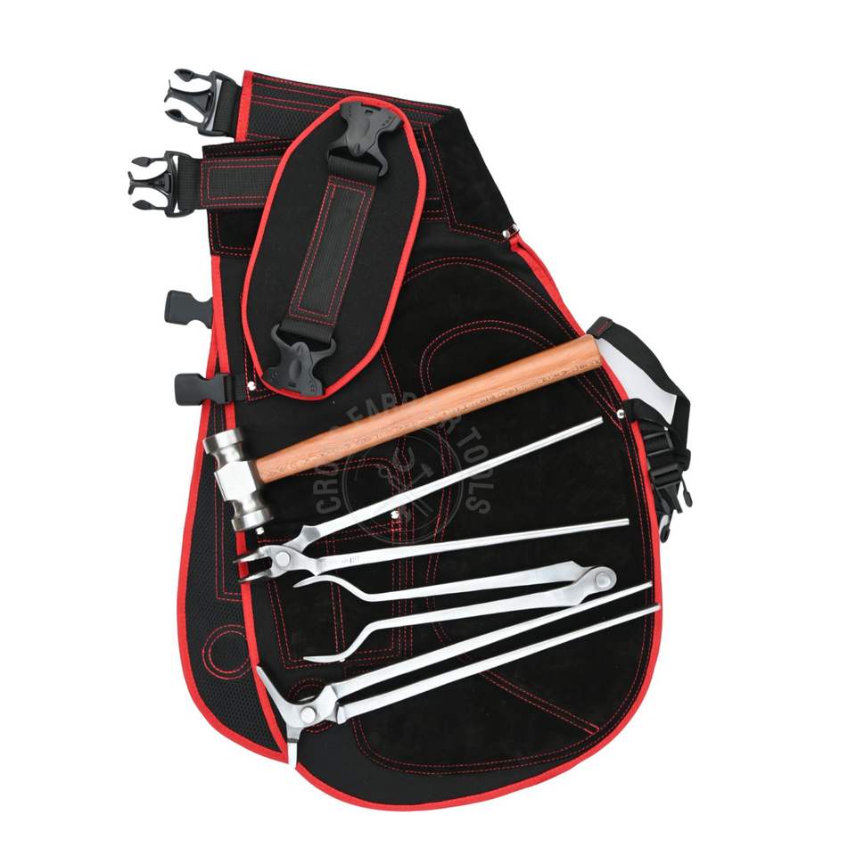 ชื่อสินค้า:ชุดเครื่องมือตีเหล็กดัดร้อนพร้อมผ้ากันเปื้อนหนังและอุปกรณ์แยกรองเท้า