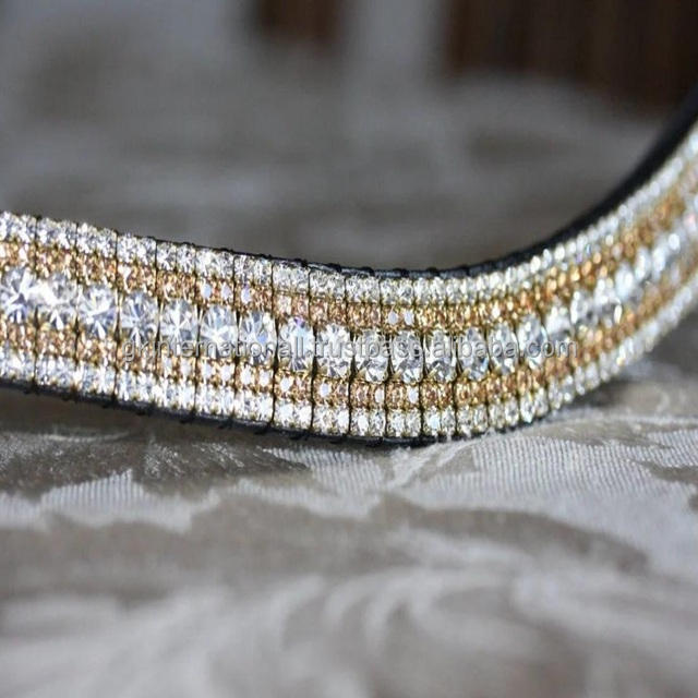 สายรัดคิ้วหนังม้าเทียมคุณภาพสูงทำมือทำจากหนังม้ามีพลอยเทียมคริสตัลอุปกรณ์ม้า