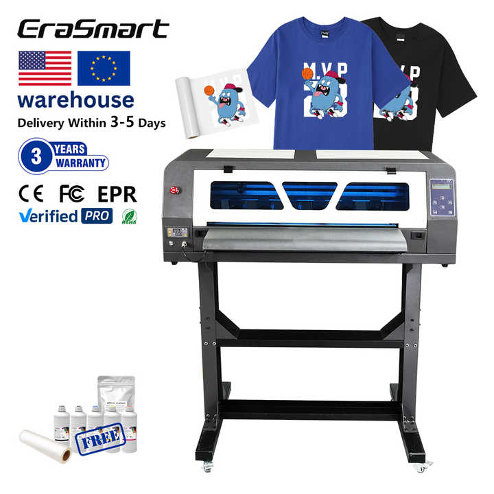 Erasmart เครื่องพิมพ์สองหัว I3200 A1 60cm 24นิ้ว DTF เสื้อยืดฟิล์มเชคเกอร์เตาอบ A1เครื่องพิมพ์ DTF