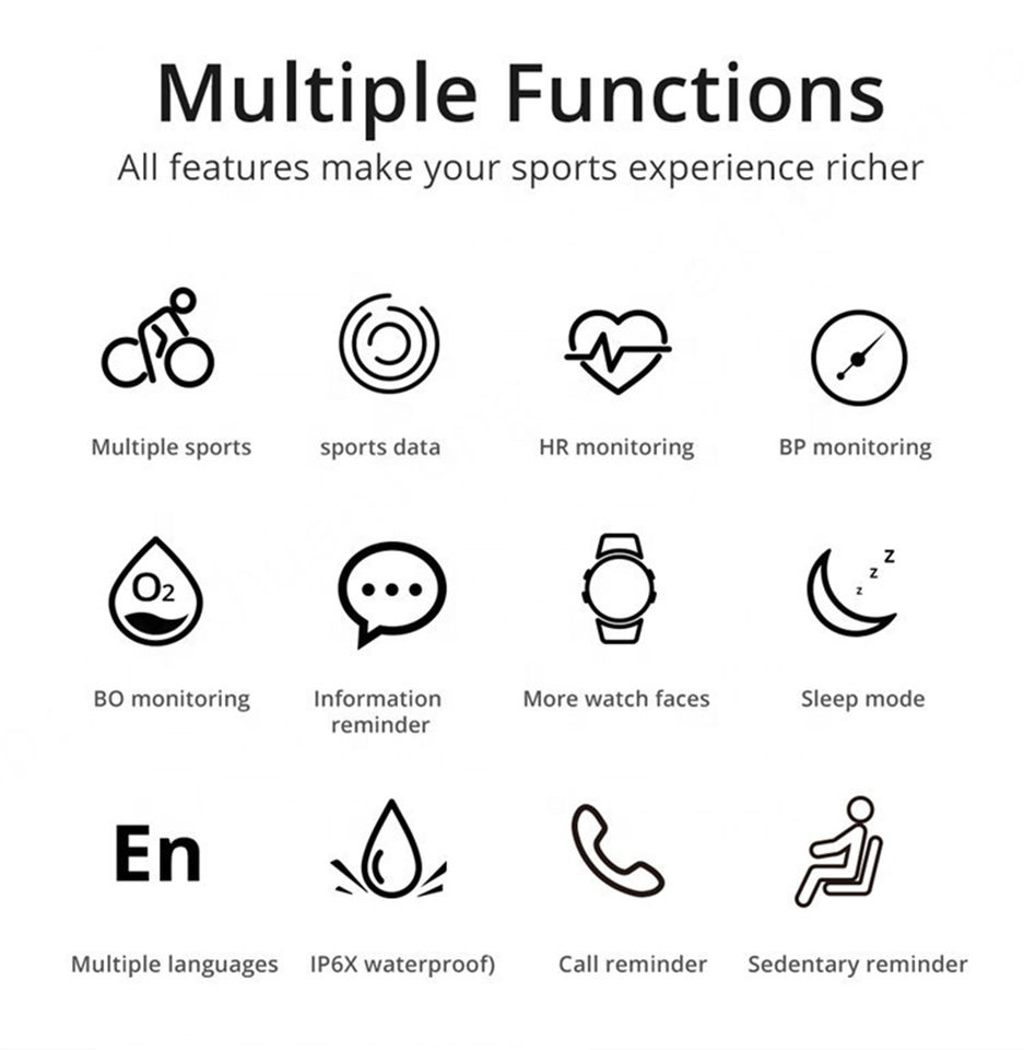 ปฏิทิน, นาฬิกาปลุก, พลังงานสำรอง, รีโมทคอนโทรล, นับถอยหลัง, เครื่องติดตามการนอนหลับ, เครื่องติดตามสุขภาพ, Passometer, การแจ้งเตือนการโทร, รับสาย, ข้อความแจ้งเตือนข้อความ, อัตราการเต้นหัวใจติดตามฟังก์ชัน