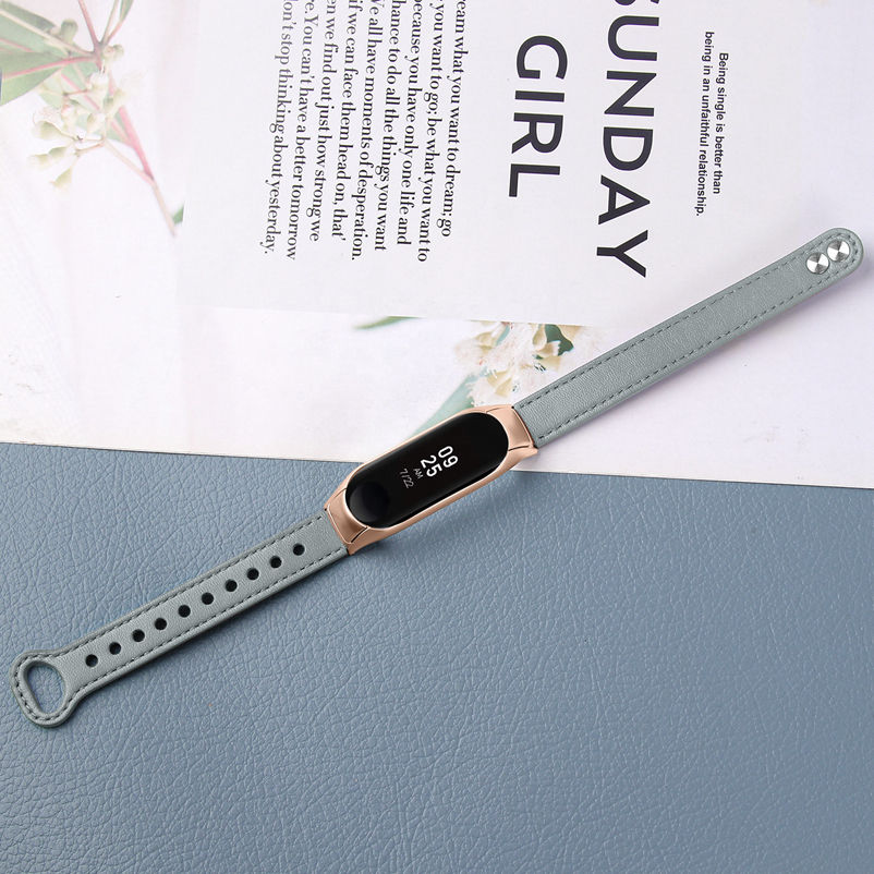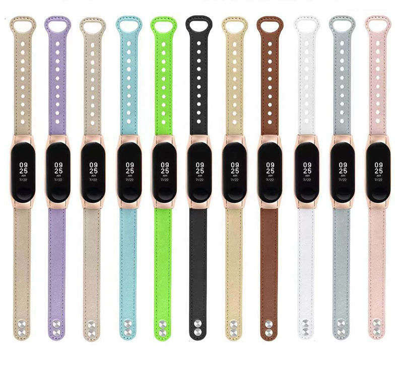 Enjoy Pretty Rose Gold Frame All-time Low Price Smart Watch Strap Double Rivet Leather Belt Watch Strap for Xiaomi Mi Band 3 4 5 6 7