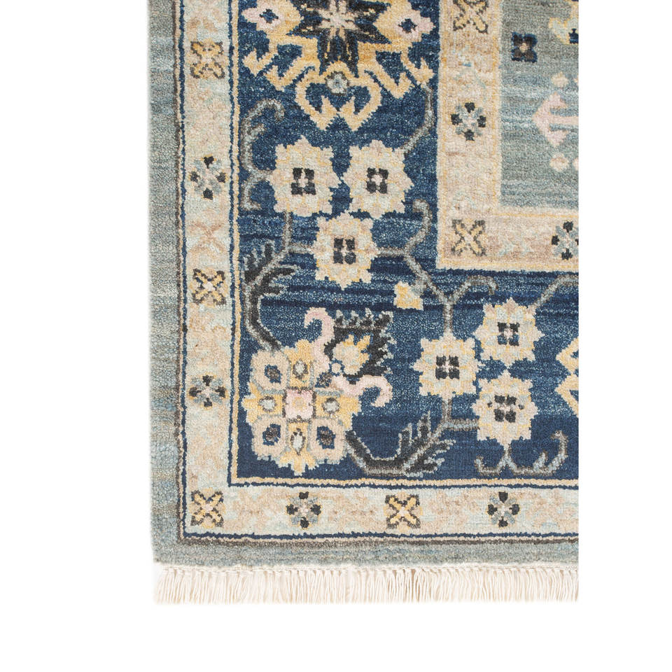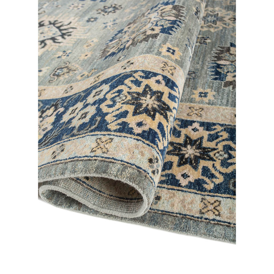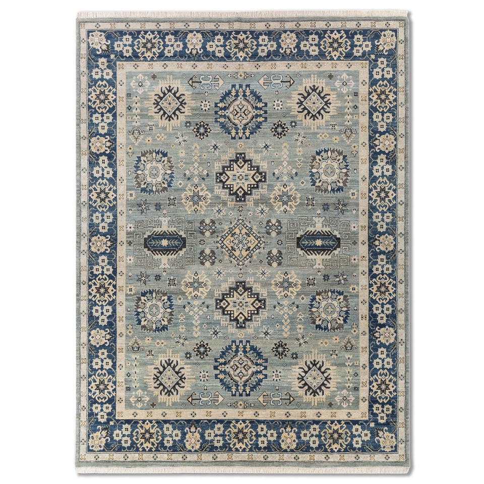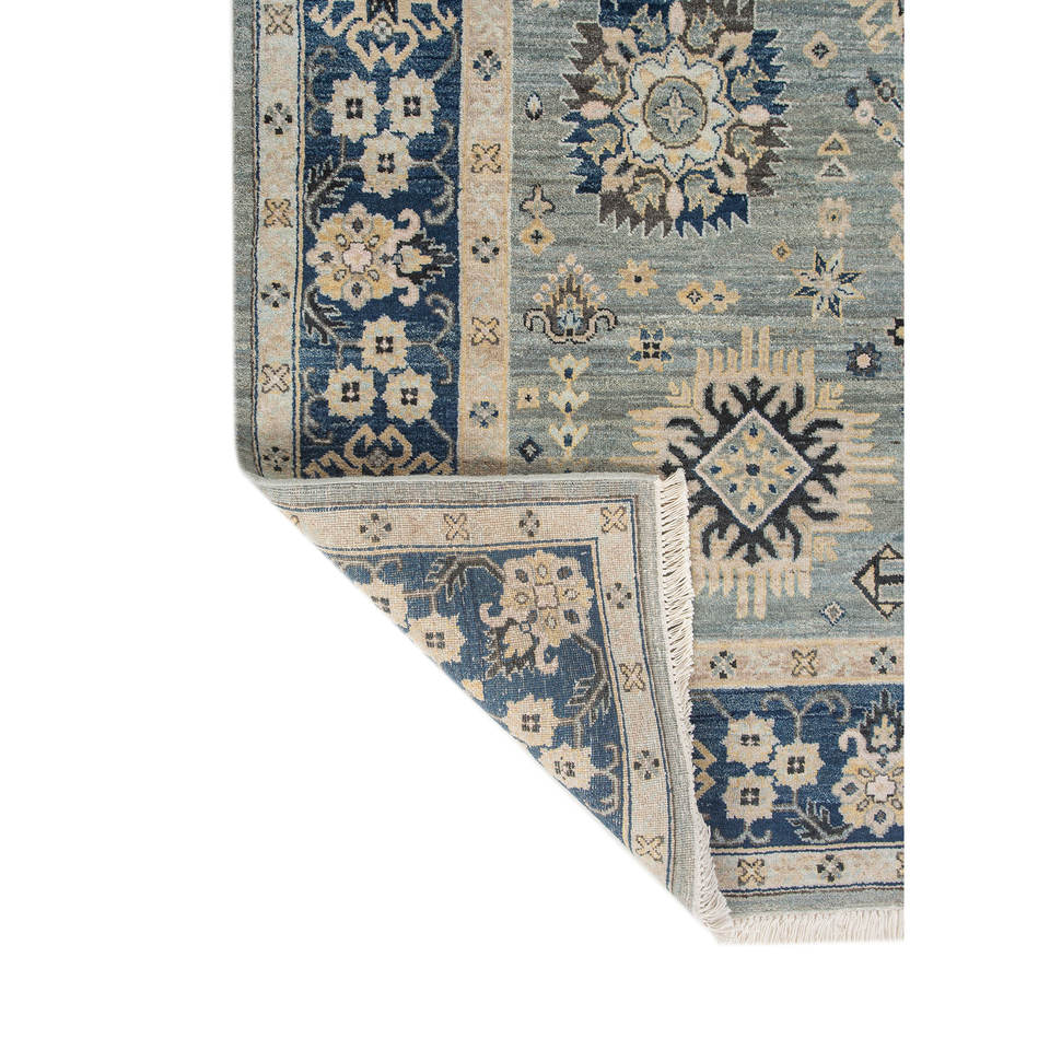 พรมขนสัตว์ถักมือ Erbe Blue รุ่น AKWL-1698 ลายเรขาคณิตสี่เหลี่ยมผืนผ้า สำหรับตกแต่งห้องนั่งเล่น ขนาด 9x12 ฟุต